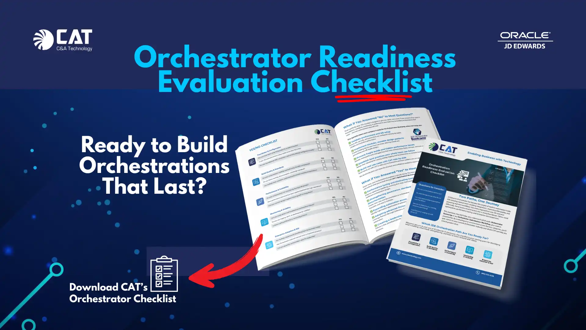 Get your free copy today and understand exactly where your JDE Orchestrator environment stands. And when you partner with CAT, you’re not just evaluating your orchestrations, you’re gaining a team that knows how to align JDE with your business strategy, strengthen your automation foundation, and support you long after improvements are made.